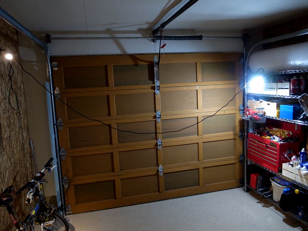 オーバースライダータイプのガレージ扉を採用した場合、扉を全開にするとオーバースライダーの機構により扉がガレージ上部に収納されるため、天井と扉の間のクリアランスに余裕がなく、照明器具が限定されるのが難点。