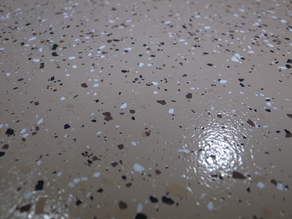 チップは手掴みで適当に撒くだけですが、乾かないうちに施工しないといけないので、フロアを6分割して作業を進めました。