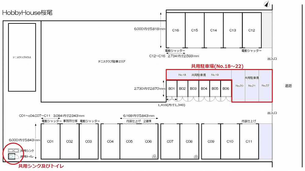 車/バイクガレージ及び周辺道路の状況