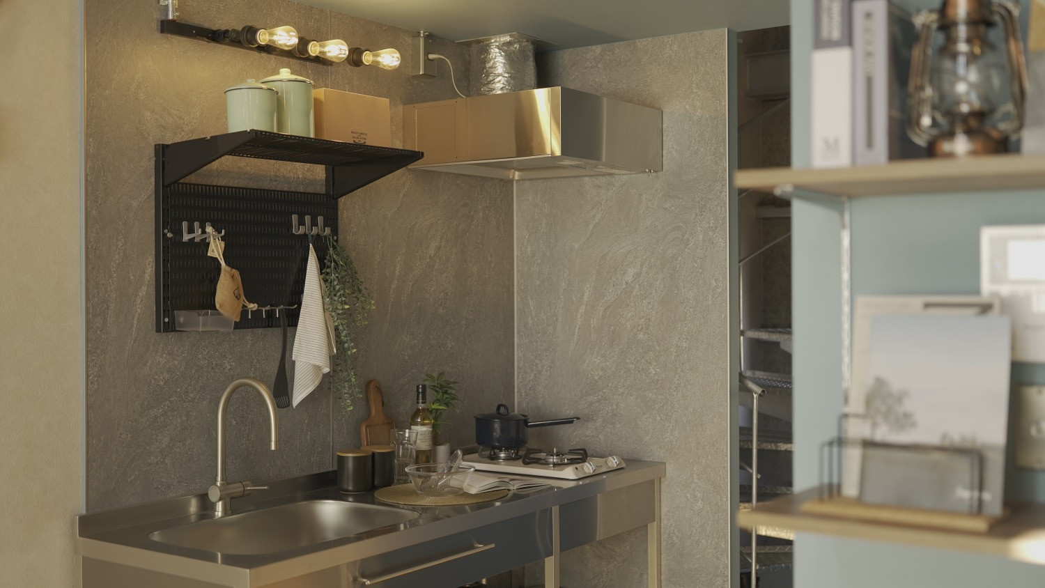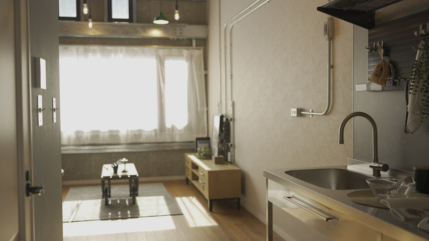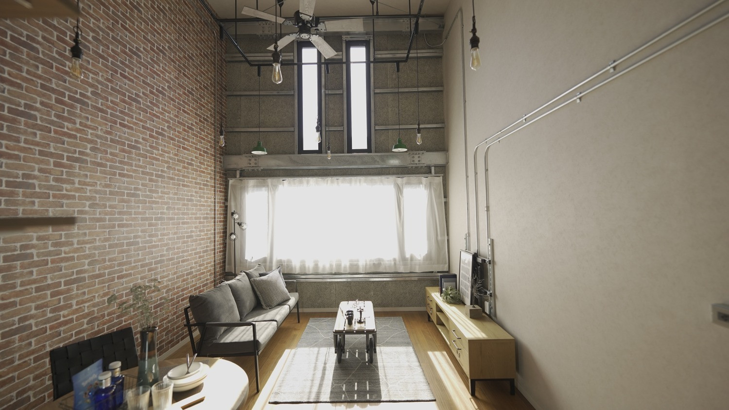 Webコメント | L(Land),M(Marine),A(Air),S(Space)の4棟12戸のシングル向けガレージハウス IWAKUNI BOND BASE。その武骨な外観と敷地に施されたロードペイントからイメージされるのは航空機格納庫。 各部屋の仕様は以下の通り統一されてますが、内外壁のペイントがそれぞれの棟のコンセプトに応じて塗り分けられてます。 ■ 電動リモコンシャッター ■ ガレージ内 スポット照明・ステンレスシンク・エアコン(200V 18畳用)装備 ■ ALSOKセキュリティ標準装備(賃料に含む) ■ インターネット利用可(賃料に含む) ■ 洋室 エアコン(200V 23帖用)・シーリングファン装備 ■ ロフト付き 吹抜部天井高約4.7m ■ 24時間ごみ出し可 ■ 共用洗車スペースにコンセント及び散水栓あり。無料で利用可 ガレージはシャッター開口間口2.5m×開口高2.3m、内部は間口3.56m×奥行6.2m×天井高2.68m。部屋に例えると13帖大で一般的なリビングルームサイズ。車種にも拠りますが車とバイク各1台は停められるでしょう。ガレージ奥にシンクが付き、換気システムとライティングレールが備わります。 倉庫の内装で使われる木毛セメント板と鉄骨やパイプむき出しのアラワシデザインの天井、敢えて見せる演出の電気配管も武骨感アップに寄与してますね。 角部屋は外壁まできっちり活用してワイドに使える様になっており、その分内装が省略されているため武骨感マシマシ。 特筆すべきはエアコン標準装備である点。整備をしたり、ワックスを掛けたり、奥の階段室から眺めたりするにも快適な空間を提供出来る事でしょう。 ガレージ奥には螺旋階段が鎮座する階段室があります。ここもガレージに続く土間コン仕上げなので引戸を取り外してガレージを拡張する感じでバイクを保管する事も可。尚、奥行は2mです。 螺旋階段を上るとキッチン。その奥に天井高最大4.7mの大空間が拡がる様は圧巻のひとこと。内装、照明、窓、電気スイッチ等ディテイルに拘ったチョイスが遊び心をくすぐります。 更に螺旋階段を上ると約6.7帖のロフト。収納家具は一切付いてないので、見せたくない荷物や生活感溢れるものはここに収納してあくまでも武骨に拘りましょう。 ロケーションは最寄駅から徒歩8分で、向かいのブロックにはローソンが、隣のブロックにはスーパーがある好立地。賃貸ガレージハウスというと郊外をイメージしがちですが、これだけ便利な立地なら純粋に居住専用で使うのもアリです。 尚、事業用途(事務所倉庫利用等)も相談可。その場合は賃料及び共益費それぞれに消費税が加算されます。 ※ 個人契約の場合、家賃保証契約必須で家賃は口座振替(月額保証料+収納代行手数料で別途550円)。法人契約の場合、家賃保証契約は原則不要(規模に拠ります)。 ※ 賃貸総合補償保険要加入(月額800円)。 ※ ホームアシスト24(トラブル時24時間駆け付けサービス)要加入(月額880円) ※ 契約時に退去の際のハウスクリーニング費用80,000円を預かります。 ※ 室内画像は反転間取りの別の部屋のものです。 ※ 家具等は撮影用に設置したものですが、ご希望があれば提供致します(但し画像のものと同一とは限りません。ご内見時にご確認ください)。 ※IWAKUNI BOND BASE特設ページもご参照ください。 ![]() |