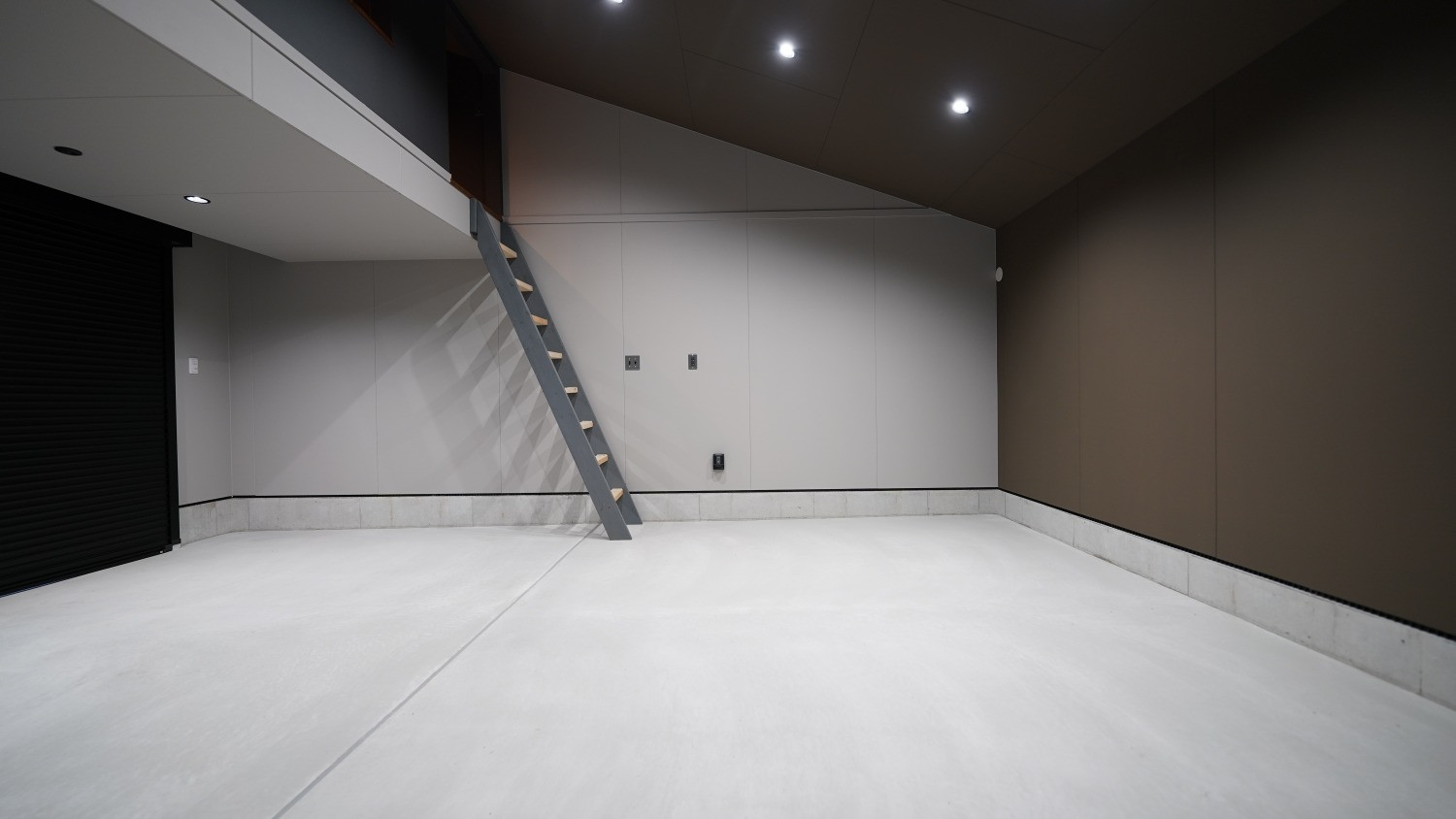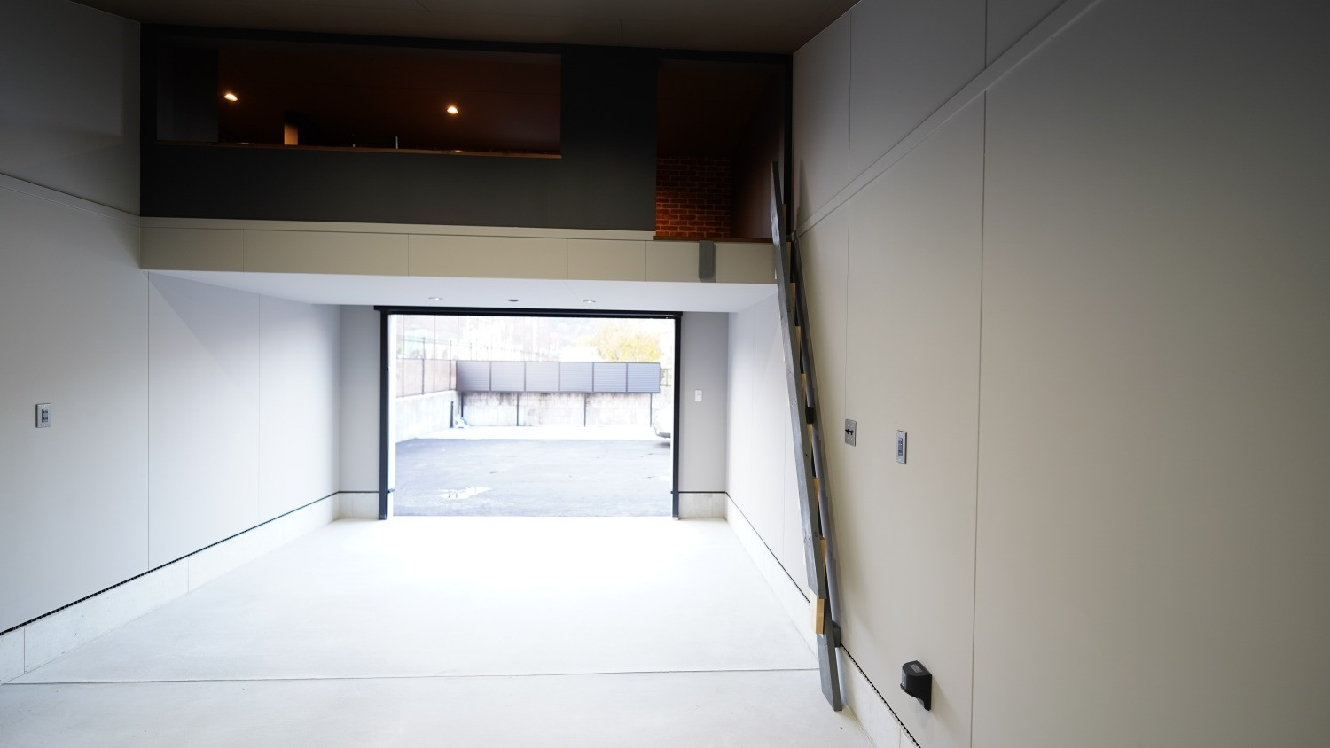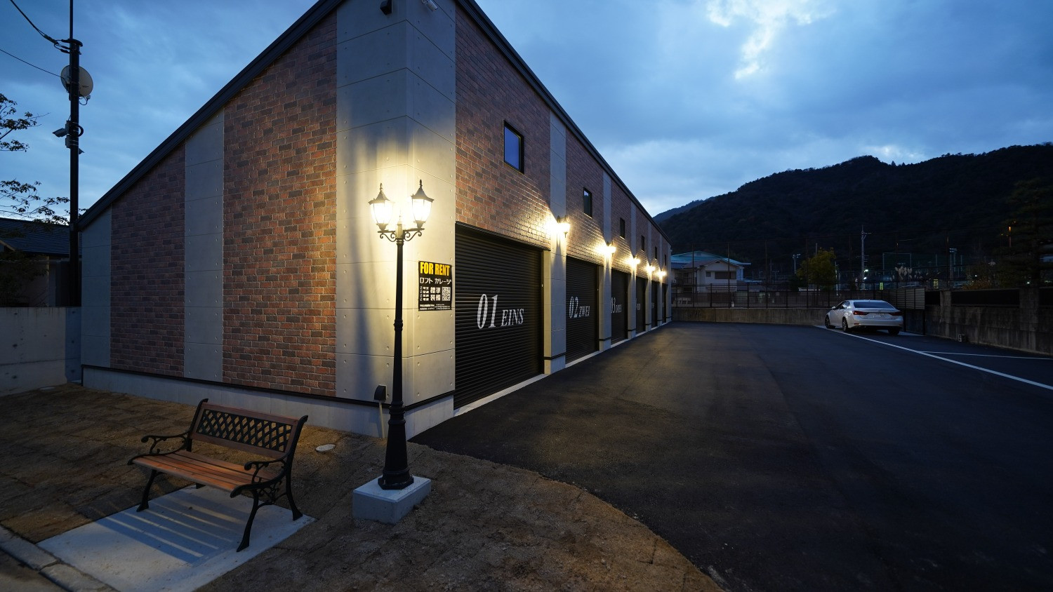 | Webコメント | ガレージ = 車庫。そんなイメージを打ち破る物件が大野中央に誕生。ガレージは趣味空間。そこでゆったりと過ごすことのできる余裕があるに越したことはありませんよね。 当物件はガレージ上部に設けたロフトが最大のポイント。それも1Rマンションとかでよく見る1帖程の荷物置きスペースとは別物の約4.5帖の広大なもの。ダウンライトが埋め込まれた勾配天井にカウンターテーブル付きの小じゃれた空間にはコンセントとLANポートも完備(インターネット接続料賃料込み)。ロフト上から愛車を眺めながら次なる構想に耽るも良し。シュラフを持ち込んで1泊2日の長期戦に備えるも良し。 ロケーションは山陽自動車道大野IC下りて直ぐ(650m)。国道2号線からのアプローチも広い道ばかりで750m。基本フラットな地形でペタペタな車両もウェルカム。大野というと何となく遠いイメージを持たれるかも知れませんが、下道でも西バイ通って阿品台抜けて行けば広島市内中心部から40分くらいですし、岩国からも30分程度。 更にはセブンイレブンまで120mなので小腹が減っても大丈夫。ネットで注文したパーツの配送先をこのセブンにしておけば、ガレージに行ったついでに荷物も受け取れますしコピーもプリントもできるとなると、これは見方を変えれば車・バイク趣味人の為のワーケーション施設とも捉えられるのではないでしょうか。断熱内装仕上げなのでエアコンを設置(電気料金他別途相談)し、愛車を見ながら仕事すればテンション上がって生産性も上がるというもの。 さて、肝心のガレージのスペックにも触れておきましょう。 【専有部仕様】 - ガレージ内寸 間口3.65m × 奥行6.15m (約13.5帖) - ロフト内寸 間口3.65m×奥行2.1m (約4.5帖) - 電動リモコンシャッター - ダウンライト照明(ガレージ内8灯/ロフト2灯) - 換気扇 - コンセント(ガレージ内100V×2箇所・200V EV用×1箇所/ロフト100V×2箇所) - LAN ロフト部にLAN端子有り Wi-Fiルーター有り インターネット接続料無料 - 断熱内装仕上げ 【共用部仕様】 - 洗車スペース(洗車可) 兼 乗換スペース(共用駐車場ではありません) 1台分あり - 共用トイレ(洋式水洗)あり - 共用ベンチあり - 共用駐車場1台分あり ※当施設滞在中は契約ガレージ前に駐車可 一時的に外出する場合は共用駐車場へ移動 シャッターガレージ自体がオトナの隠れ家的な存在なのに、その上にロフトが在るとくれば秘密基地感増し増し。ガレージ以上ガレージハウス未満。 ※Ohno Garret特設ページも併せてご覧ください。 ![]() |