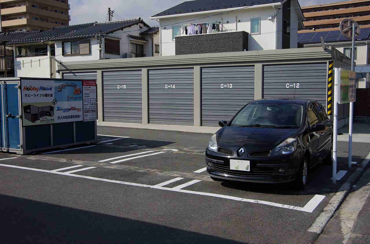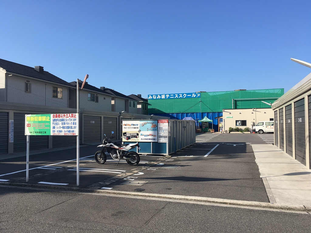 | 特色 | 平面駐車場(共用)、大型バイク駐輪可、バイク駐輪可、高セキュリティガレージ(バイク)、1F、トイレ(共用)、上水道(共用)、防犯カメラ、準工業地域 | ||