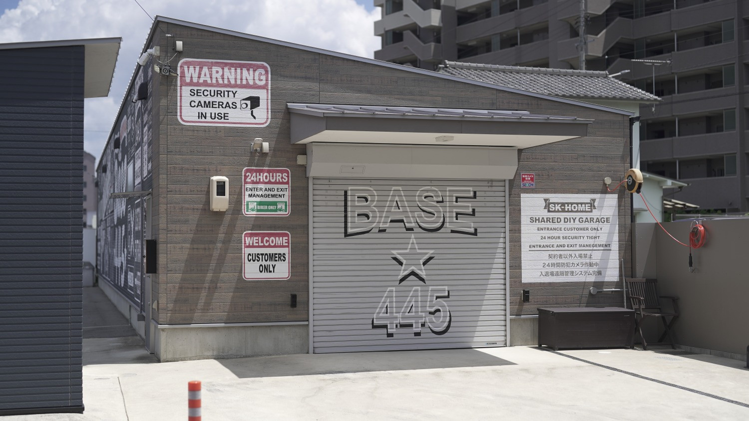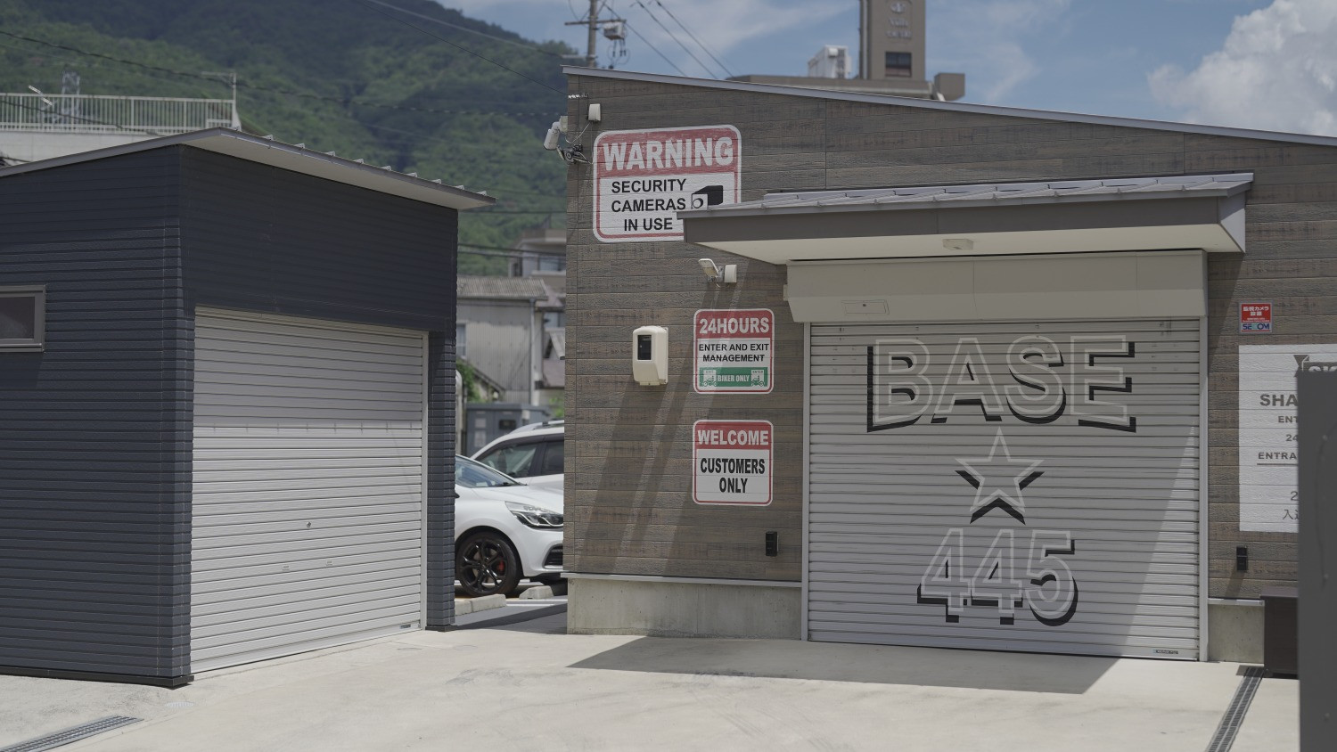 | Webコメント | ジ・オールマイティ。そう呼ぶに相応しいバイクガレージが緑井に登場。 賃貸バイクガレージは大きく分けてシェアタイプとシャッター(又はコンテナ)タイプに分けられます。シェアタイプはビルやマンション等の1Fに設けられ、大空間を平面で区切って複数人で共同利用するスタイル。専有スペースは小さいながらも比較的リーズナブルな賃料でご利用頂けるのがこちらです。 一方でシャッタータイプは独立した空間を有するバイクガレージで車両以外のパーツやツール、洗車グッズにジャケットやブーツ等々も一緒に収納可能な点が人気ですが賃料は高め。 専有スペースは欲しいけれど賃料は抑えたいという良いとこ取りニーズに応える形で生まれたのがハイブリッド型賃貸バイクガレージ「BASE★445」。 ド派手なペイントが目を引く平屋建ての倉庫風の建物には2つのシャッターが備わり入口と出口を完全に分離。 ご契約時に貸与されるICタグさえ持ってれば何も要らないし何もしなくても良し。いわゆるスマートキーの一種でして、リモコンを取り出さずとも、バイクから降りて暗証番号を押さずとも、乗ったままシャッターに近付けば自動で開閉。閉め忘れも無し。 ICタグを採用する大きなメリットがもうひとつあり、入退室管理システムと防犯カメラによる録画映像を突き合わせることによって、防ぐことが困難な内部悪意者による犯行も特定できるのが強み。 建物内は通路を中心に左側がA区画(W3,510mm×D2,055mm 約4.35帖)、右側がそのハーフのB区画(W1,755mm×D2,055mm 約2.17帖)。個々に与えられた空間には100V電源に棚とパイプハンガーが備え付けられてますが、お気に入りのポスターを貼ったり棚を増築したりタイルマットを敷いたりとDIYで更なるカスタマイズもOK(但し事前要申告)。シェアハウス内の自分の個室の様な利用シーンをイメージ頂ければと。 個人的には、スリムなワイヤーシェルフを追加で置いてツーリング用のキャンプグッズを纏めておけば、何時でも出発できるし家は片付くし一石二鳥でかなり使えるんじゃないかと思うんです。 場内は一方通行で前輪から斜めに突っ込めば大抵のバイクは余裕で入ります。何度も切り返す必要無し。一方通行故に出庫時も奥の方から延々とバックする必要無し。超重たいツアラークラスでもバックギア要らず。 そんな専有スペースの自由度の高さも然ることながら、共用設備の充実ぶりも特筆もの。先ずは基本のシンクとトイレ(温水洗浄便座)、テーブル&ソファーを置いたコミュニティスペース、屋外の洗車スペースと喫煙スペース、自販機もありますよ。極め付けはコンプレッサーとエアガン。ツーリングから帰って洗車。エアガンで水を吹き飛ばして屋内でゆっくり吹き上げてワックス掛け。整備の途中で一服してたら仲間が帰ってきてバイク談義が盛り上がり過ぎて一向に作業が進まず来週末に持ち越しなんて楽し過ぎません? 最寄駅から徒歩5分ですが、共用駐車場も3台分完備。万一満車の場合も併設するコインパーキングも利用可(500円/日で出入り自由なシステム)。 これまで数多くのバイクガレージを手掛けて参りましたが、ここまで全部載せのオールマイティな賃貸バイクガレージは唯一ここだけ。そう考えるとこの賃料は決して高くはないと思います。 ※今回募集のB7は2台分の区画として募集致します。出口付近で若干使い勝手が悪い(センサーが反応してシャッターが開き勝ち)ので賃料は相談可。複数台所有の方や、整備に広々とした空間をご希望の方はどうぞお気軽にご相談ください。 ※Base★445特設ページも併せてご覧ください。 ![]() |