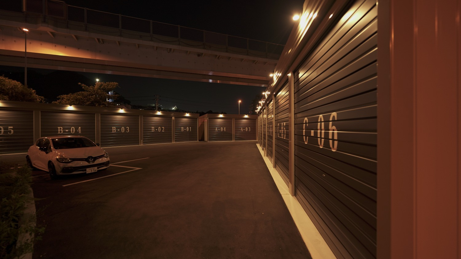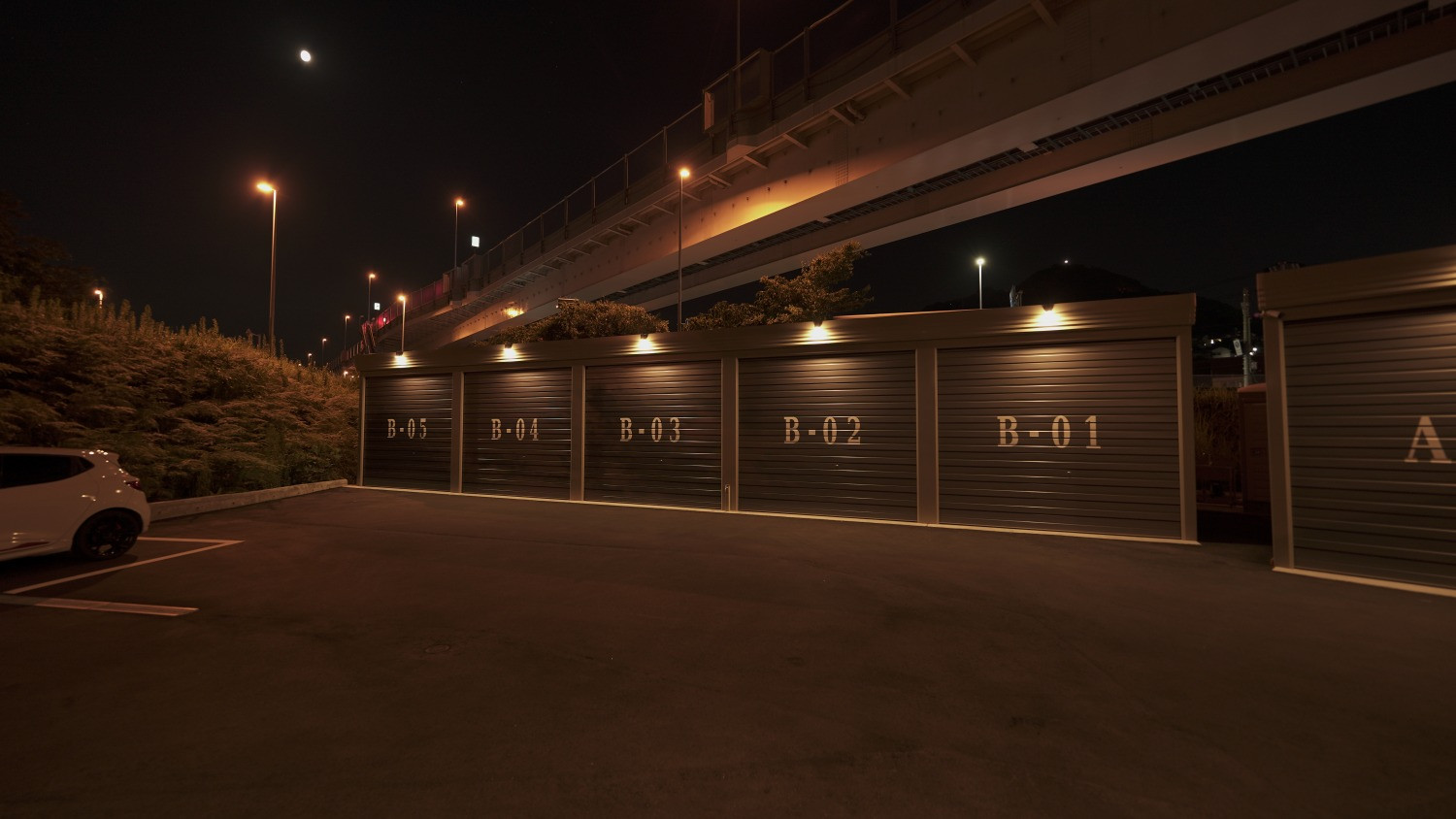 | 特色 | シャッターガレージ、電動シャッター、共用駐車場、高セキュリティガレージ(車)、角地、平坦、照明器具、防犯カメラ、敷地内部外者立入制限、電気利用可、水道利用可、共用トイレ、洗車可、換気扇、扉付き、アスファルト舗装、コンビニ近(徒歩5分以内)、高速IC近(2km以内)、工業地域 | ||
