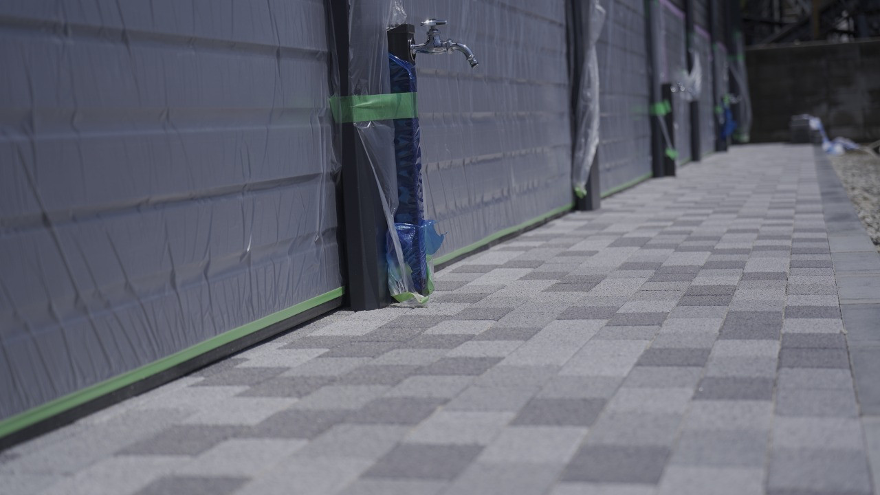 ガレージ内にはコンセント及び照明が標準装備。各ガレージの前面には共用の水栓柱が複数設置され、延々とホースを延ばさなくてもサッと水が使えるのは便利な点。共用トイレを設置する計画もございますが、廿日市市の令和8年度の下水道整備工事完了後となりますので詳細な時期は未定です。