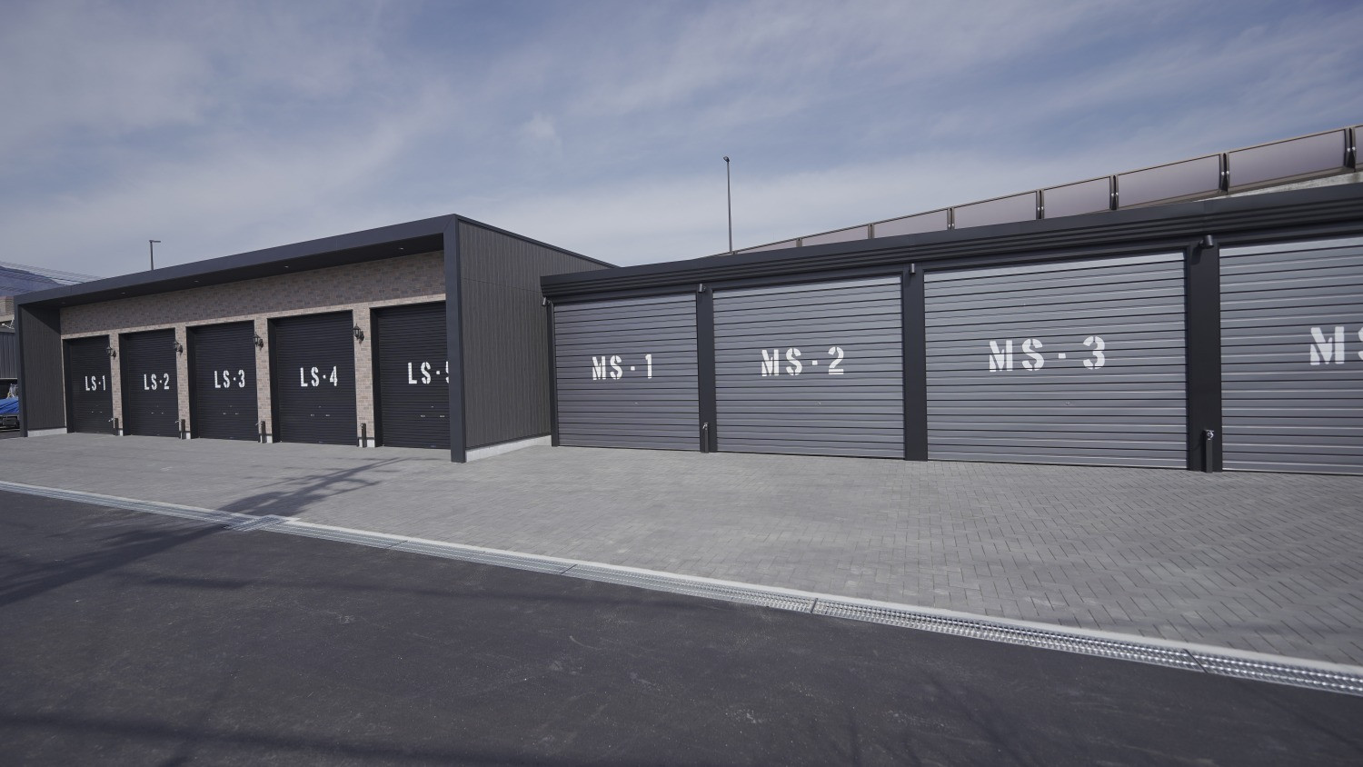 Webコメント | 西バイと石内バイパスの交わる木船交差点から僅か600m。近所にセブンイレブンにゆめマートに飲食店多数あり。 アクセスし易く長居も可能なロケーションが特徴的な大規模ガレージタウン。 サイズは3タイプあり、LS-type(約15.7帖)・MS-type(約12.6帖)・SS-type(4.8帖)とカーガレージ及びバイクガレージ共に各戸の広さは最大級。 以下はMS-typeの詳細です。 ■ サイズ(内寸):間口3.3m×奥行6.33m×高さ2.95m ■ 照明・コンセント前後に2箇所あり ■ ガレージ背面にスライドドアあり ■ ガレージ内後方に給排水管埋め込み(借主負担でシンク設置可) ■ 駐車場:共用駐車場利用可(赤いアルファロメオが停まっている辺りに縦列駐車) 尚、場内滞在中は契約ガレージ前に駐車可 ■ その他 :MS-2と3の間柱前方、及びMS-4右側柱前方敷地内に散水栓(又は散水柱)設置予定 契約ガレージ前にて洗車可 MS-typeはメーカー既製品のガレージで最も大きなモデル。床面積の広さ約12.6帖はちょっとしたリビングルーム並みの広さですが、高さが約3mもあるおかげでその面積以上の広々感を抱かれる事でしょう。シャッター開口高は2.85m。ハイエースロング・ハイルーフ仕様にルーフキャリア載せて脚立積んでも余裕。 開口部は青みがかったグレイのサルファシルバーのオーバースライダーを採用。オーバースライダーはガイドレールに沿って天井にパネル状のシャッター扉が収納される構造で、開閉のスムースさと開閉音の静かさに定評があります。また、シャッターボックスが不要なため開口高の確保に有利で耐風性にも優れます。 全戸セコム警備保障サービス付きも特筆点のひとつ。賃料とは別にランニングコストが月額3,500円(共益費・管理費欄)必要ですが、個別に同様のサービスを利用するとなると初期費用33,000円に月額11,000円×60ヵ月が一般的な相場。途中解約の場合は残債を一括清算しなければならず導入のハードルは高いものです。そう考えるとすこぶるリーズナブルな料金で安全を手に入れられるのも当物件のストロングポイントです。 ※ 出入口は敷地東側(レイアウト図 左側)。道路からのアプローチは、小洒落たCafe風の建物を左に見ながら当敷地に進入するルートで通路は広々としてます。 ※BASE八幡東 特設ページも併せてご覧ください。 ![]() |