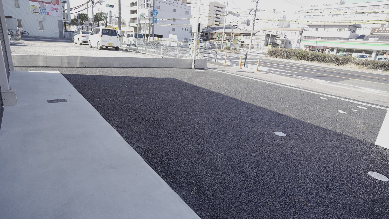 半径500m圏内にアストンマーチン、フェラーリ、レクサスディーラーが点在するプレミアムカーストリート沿線で、広島高速2号線東雲ICまで1.5km、ファミマまで徒歩1分、セブンイレブンまで徒歩2分と何かと便利なロケーション。